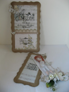 After cutting and punching the cardstock (Bazzill Kraft) and papers I brushed over them with DistressInk WalnutStain. I used several punches from Martha Stewart, corner- and edgepunches and my beloved butterflypunches. I also used one of the dies from Spellbinders Fancy Tags- set.