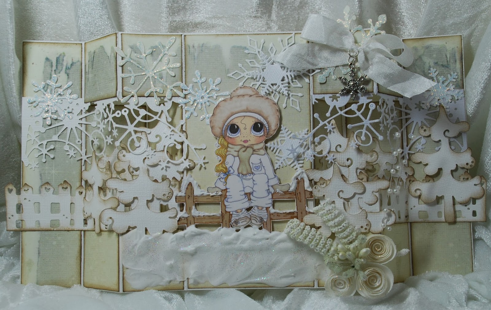 I may have gone a bit wild using dies, but I wanted to put this girl in a real winter wonderland.